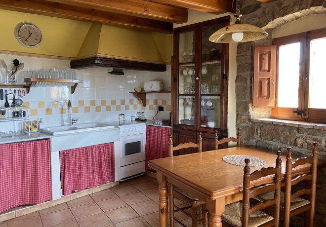 La cuina està equipada amb vaixella, coberts, cristalleria i tots els estris necessaris per cuinar i servir els vostres àpats. Disposa d’una nevera amb congelador, cuina amb forn, microones, minipimer, cafetera i torradora. També hi trobareu estovalles, draps de cuina, paper de cuina, sabó per rentar plats, fregall, etc. A més, hi haurà un setrill d’oli i vinagre, així com petites dosis de sal i sucre.